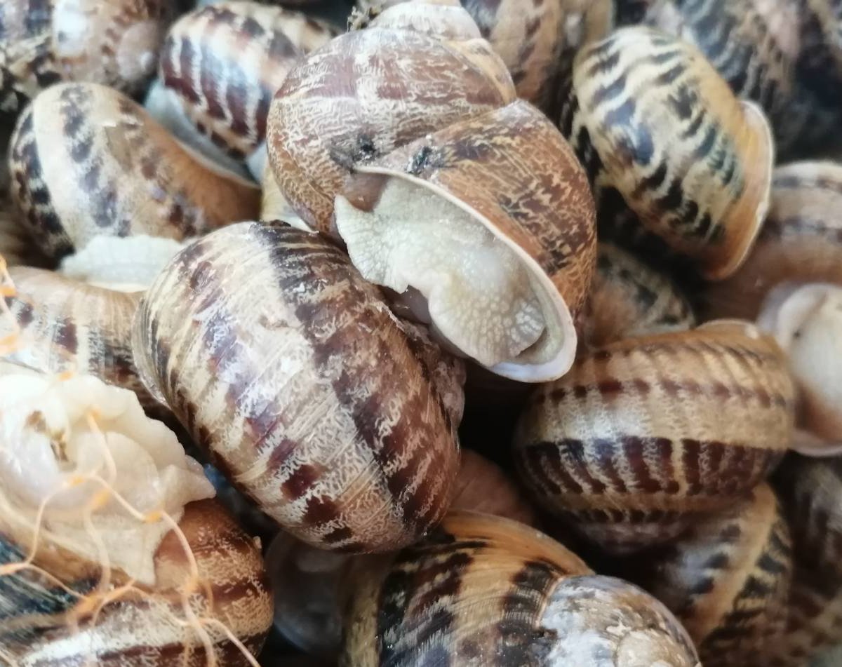 Nous sélectionnons un lot d'escargot Helix Aspersa Muller d'environ 25 kg. L'âge des escargots doit être d'au moins 110 jours. Nous trions et sélectionnons les animaux visuellement endommagés et morts. Après lavage, les escargots trempés sont laissés 72 heures pour nettoyer les intestins à température ambiante.